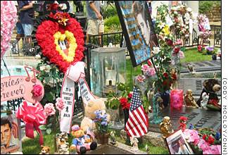 ![]() 3 Elvis, his parents and his grandmother are buried on the grounds of Graceland. There is a plaque commemorating his stillborn twin. Tokens of affection left by devotees, including teddy bears, flowers and pictures, cover the gravesite.