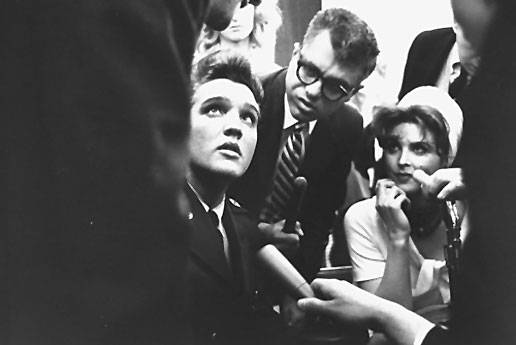 Media frenzy: Elvis quickly learned an important lesson in celebrity: Fame means fans and paparazzi. After his return from Army duty, the singer (here with actress Tina Louise) braves a clutch of reporters