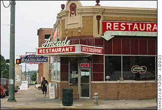 ![]() 8 The Arcade restaurant is one of Memphis' oldest eating establishments, and was frequented by Elvis in his day. Seated in a vinyl booth in the glow of the neon sign, one almost expects to see the King walk in and order one of restaurant's famous cheeseburgers.