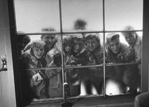 1960 Sneaking a peek: Fans try to catch a glimpse of Elvis, just back in the U.S. after a stint in the Army