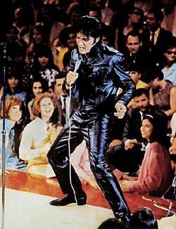 12.HE'S BACK: A black leather-clad Elvis heats up the small screen in his famous February 1968 NBC special, widely known as his "comeback" show.