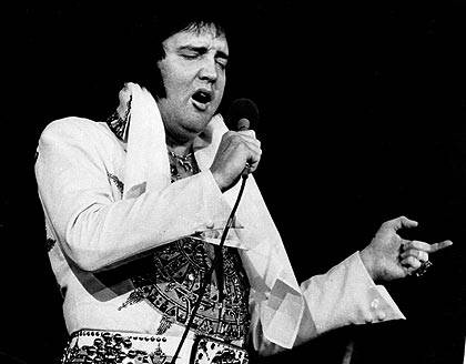 16.FAREWELL KING: A bloated-looking Elvis performs in Rhode Island three months before his death in 1977.